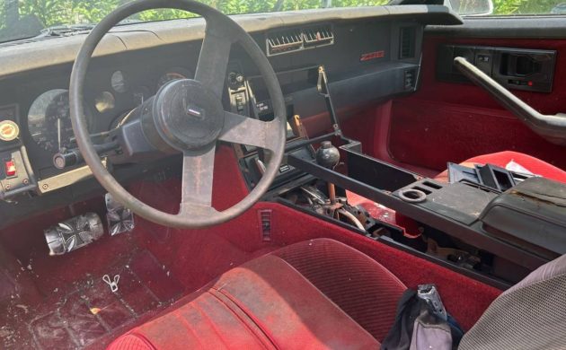 The third-gen Camaro’s low, angular styling and T-top roof give it a timeless ’80s performance look, even if this example has been parked since arrival. The seller says they rolled it off the trailer into its current spot and haven’t touched it since.
