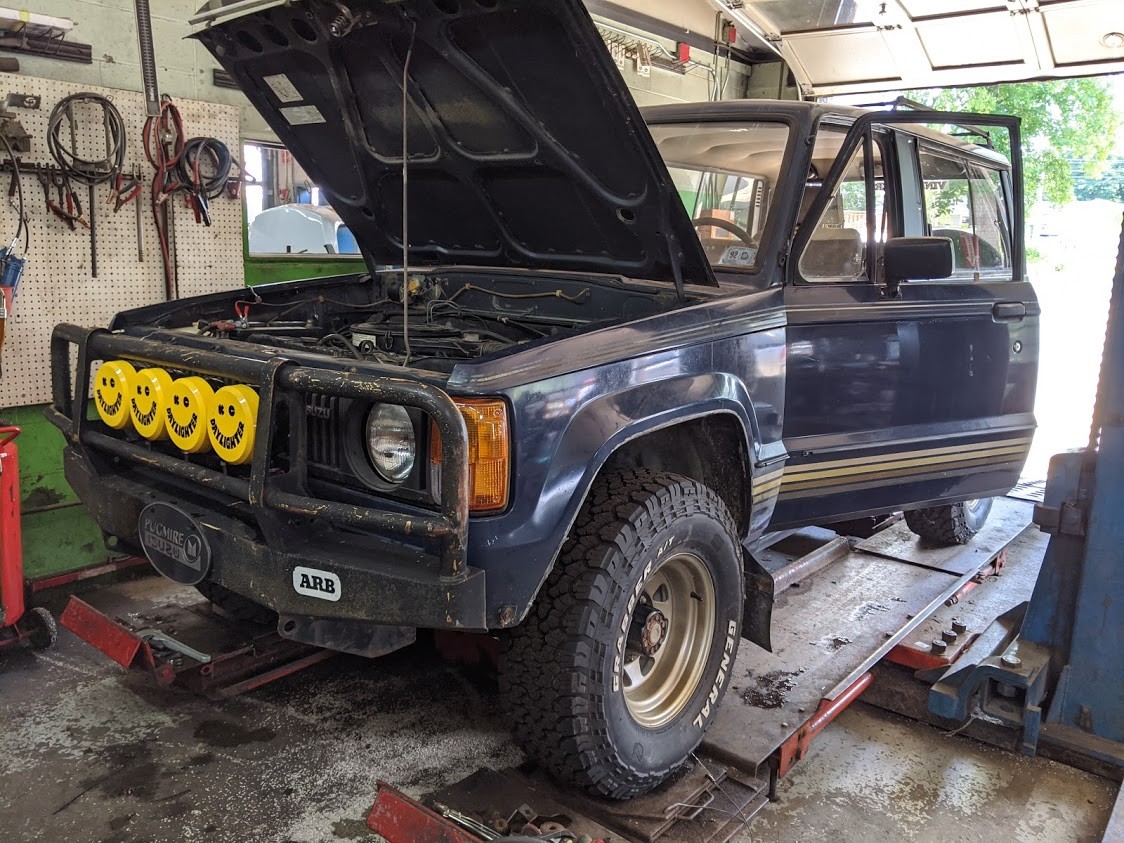 It’s been ages since I’ve provided an update on any of my project vehicles, and for that I apologize. A few things were happening, including a house move, the pending arrival of our second child, and of course, that lovely thing we call a pandemic. Still, my projects were still moving ahead in fits and starts, and the 1986 Isuzu Trooper seems to be the one that’s closest to being done for a spell, at least until I get the next wild hair across my ass to fix something that isn’t broken. I have to give a shout out to Art’s Complete Automotive in Jamestown, Rhode Island, as they have taken the Trooper under their wing and tackled lots of buttoning up that needed to happen. When I visited yesterday, they had the exceedingly rare ARB brush guard installed, with a row of classic KC Daylighter driving lamps mounted up – but that’s just one aspect of what they’ve been sorting out.