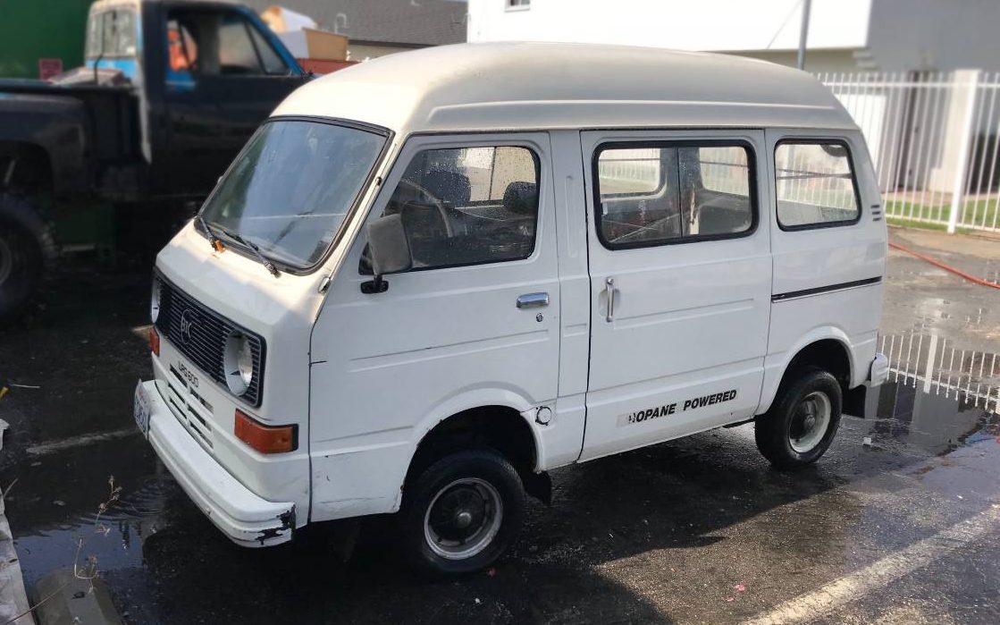 A company called SanFu Industries in Taiwan, which was heavily into industrial gas production, imported a number of the third-gen Subaru Sambar vans (1973-1982) and converted them to propane power. The seller says that it’s “great for indoor use”. While that may seem absurd, it isn’t. I started and ran a commercial cleaning service after high school for several years and our floor buffer of choice had an 11-hp Honda engine on it that was powered by propane so they could be used indoors. They were clean-burning with no exhaust smell and since we did a lot of grocery stores and other food-related accounts they had to be clean. I could see this propane-powered van being used in a big manufacturing plant, but I’m sure that a new electric vehicle would be much better and easier to use and recharge rather than filling propane tanks would be. They say that this van is in “Excellent running condition, no rust, two cylinders water cooled engine, manual transmission, stereo CD player mp3. Recent service, complete brake restoration rebuild, ready to go”.