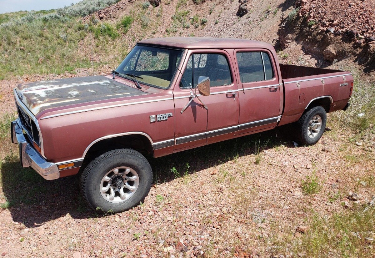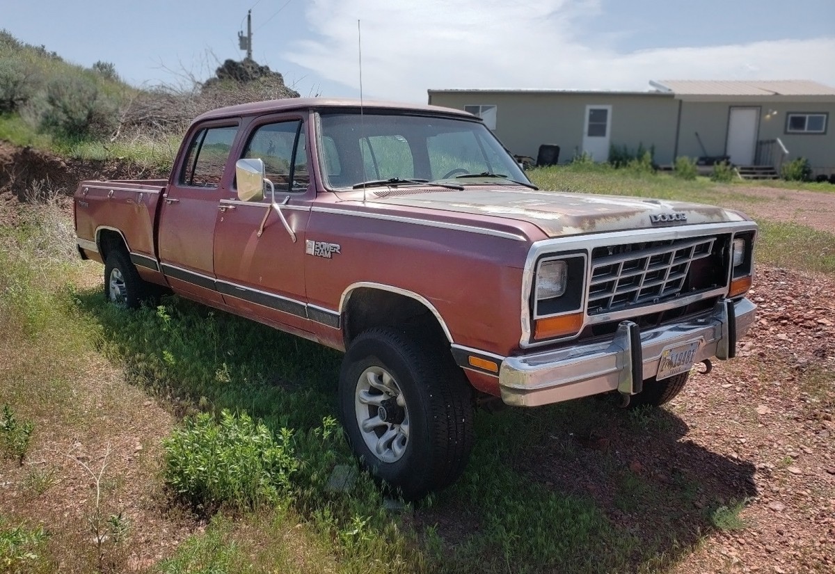 This is one big truck, although most modern pickup owners are used to driving a 4×4 four-door truck. This 1985 Dodge Power Ram Prospector crew cab is listed on eBay with bids of $4,500 and it’ll sell with no reserve. It’s located in beautiful Rozet, Wyoming.