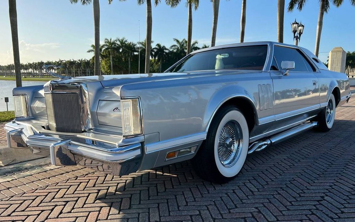 Some things automotive, and otherwise, leave me speechless (though usually not for long). A 1978 Lincoln Continental Mark V is generally not the type of automobile that’s going to cause me a nervous and jerky reaction. This example…well it did elicit a silent “really?” Let’s look it over so we can gauge your reaction. Wearing the full Palm Beach treatment, this whammer-jammer is located in Wellington, Florida, and is available, here on craigslist for $23,500. Thanks to T.J. for this notable discovery!