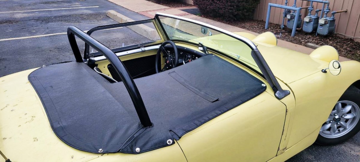 You can’t ditch the headlights as they are original and is why it is nick-named a “bug eye” Sprite, but if it were my car the first thing to go, considering that it isn’t going to be raced, is the ugly roll bar.
