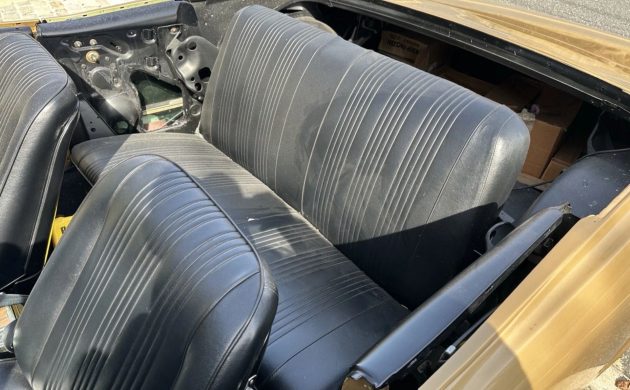 It’s a beautiful car in a beautiful color. I like gold (which this is actually). And this is also my favorite generation of the Goat. It may be 90 percent completed, but the interior will need cleaning, it needs a top and its mechanism repaired likely. Until that’s done the buyer needs to keep it inside. It always bothers me when a seller says, “nearly finished, but lost interest”. Why? The car needs an in person inspection before the green changes hands, yet there is a non-refundable deposit, so get there before the auction ends.