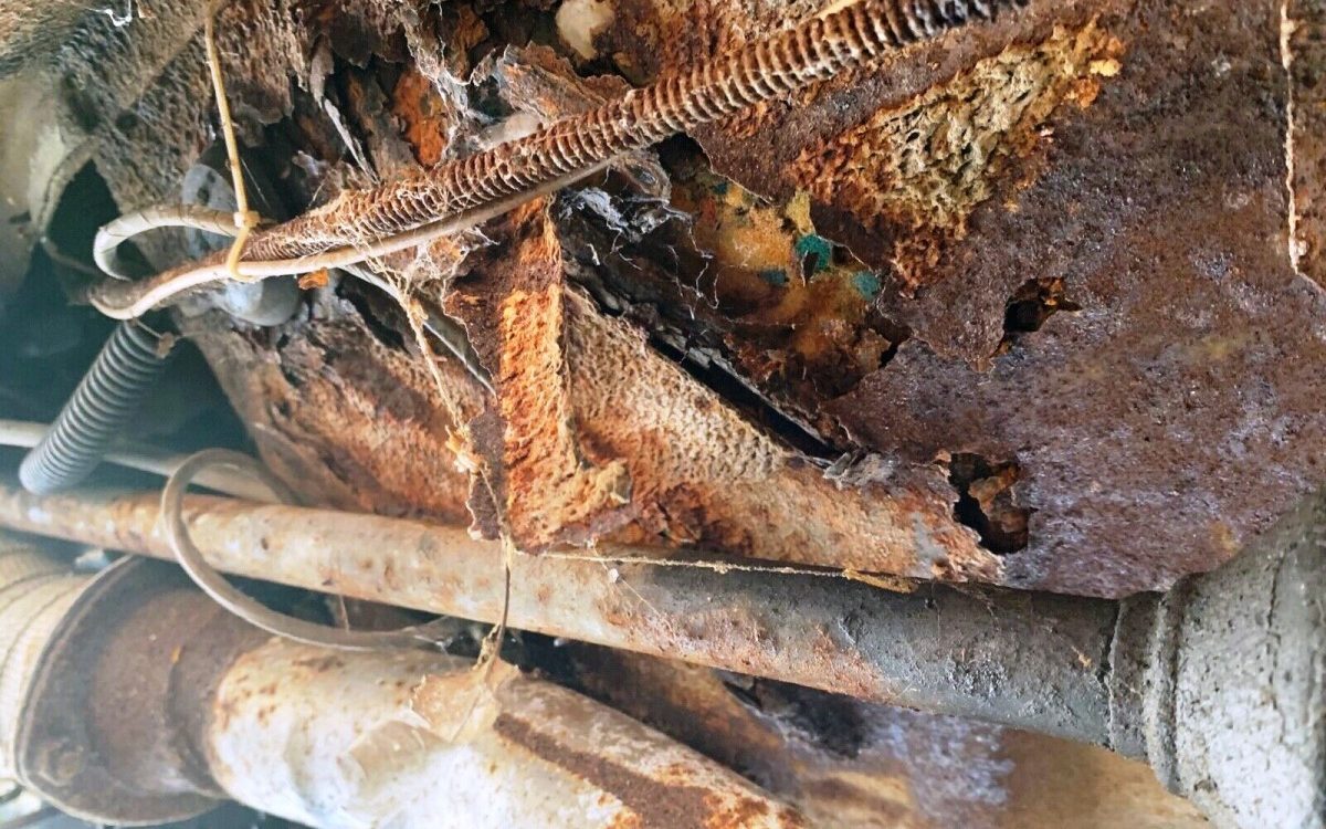 Just so you’re not thinking this car needs a simple fuel system cleansing and maybe spark plugs before you hit the road, here’s an undercarriage picture graciously included by the seller. Bubbles under the paint in various places hint at body filler and hidden rust as well. This car’s Barracuda beginnings mean anything goes regarding originality, and collectors and investors won’t drive the price into the stratosphere. How would you build this neglected purple fish?