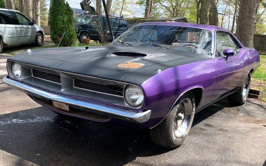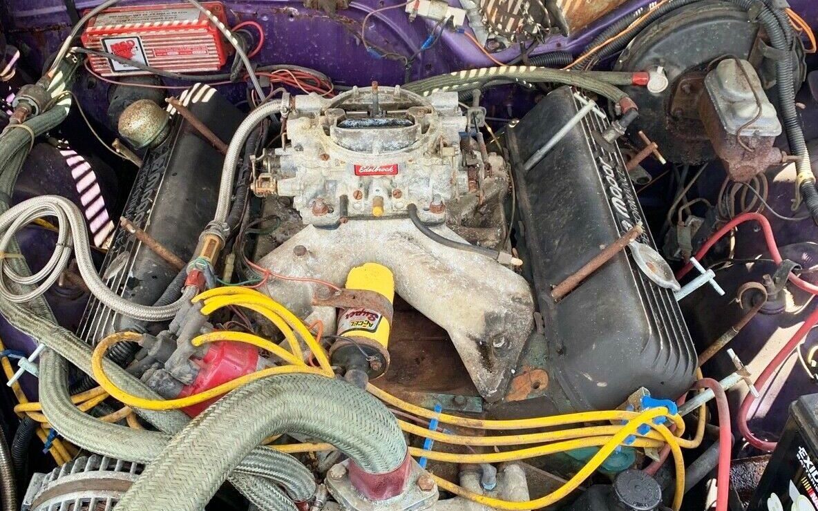 In Plymouth parlance, there really is a difference between the Barracuda and the ‘Cuda, the latter being the “performance-minded” version, according to 1970’s sales brochures. This 1970 Plymouth Barracuda left the factory with light green paint a 318 cid (5.2L) V8 under the hood. Later in life it swallowed a monster 440 and a beefy 727 automatic transmission. In-Violet paint and a host of ‘Cuda parts nearly complete the transformation into a ‘Cuda tribute/clone. For sale here on eBay, the Trenton, New Jersey classic shows a bunch of rust. That won’t stop folks from drooling over this flashy E-body with the big motor. At least a dozen bidders have nudged the market value of this purple pretender over $13,000, mere chicken feed in the world of rusty Mopars.