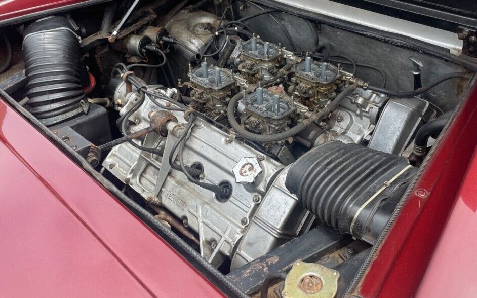 The transverse-mounted, mid-engine V8 measures 2.9 liters and generates about 255 HP. The seller states, “The car starts right up and moves around under its own power“. It has not been driven over 25 MPH but the brakes are said to perform properly. There is a reference to an alleged, undocumented engine rebuilding that occurred long ago, and the car was supposedly only driven a few thousand miles before being parked. The odometer reading is 28K miles but there’s no claim of authenticity. Also noted is a coolant leak and what appears to be an inoperative charging system.