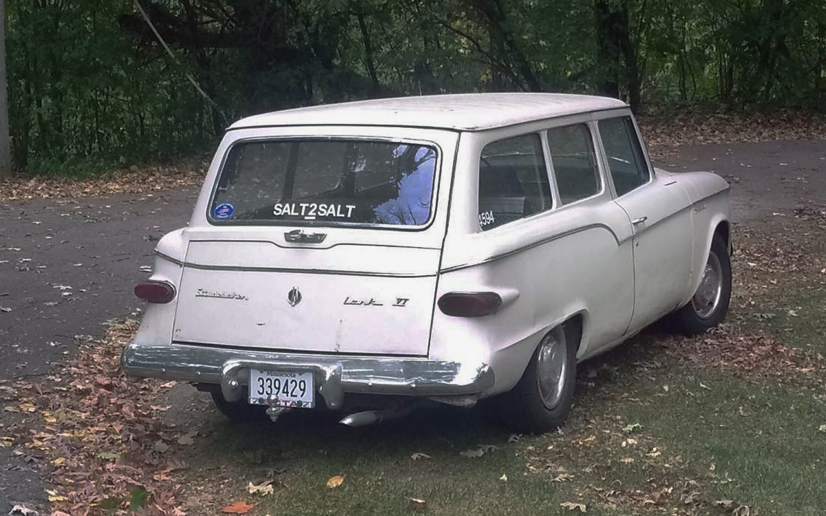 This sweet little wagon looks a little rougher from this side, at least in the above photo without wheel covers, which is weird because the next photo of the same side has them showing. I wonder if there are four of them? The Lark was made from 1959 until 1964 which seems like it’s not long enough. I mean, it seems like the Studebaker Lark was made for much longer than that, doesn’t it? They should have been if the company wouldn’t have gone belly-up, or by 1966 at which point Studebaker had been out of the US and had been building them in Canada.