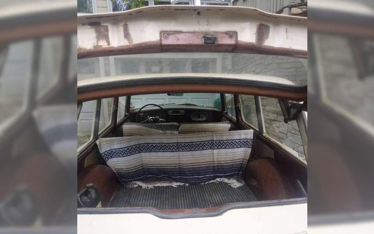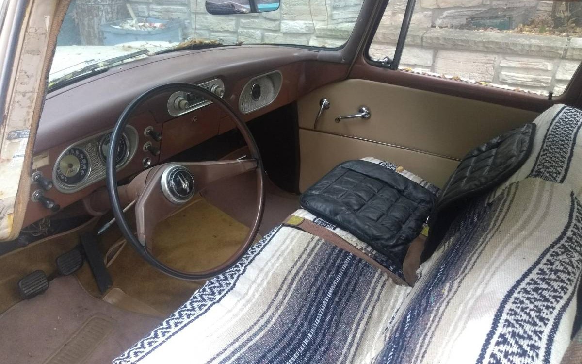 Here’s what the rear cargo area looks like, sort of, if you can tell from the photo above. There is no engine photo, unfortunately, but it should be Studebaker’s 170 cubic-inch L-head inline-six with just under 100 horsepower. A sweet little 259 V8 would be fun if a person could find one and slip it in the engine bay. As I mentioned, the seller says that this 170-six-popper purrs like a kitten, hopefully without the ever-present hairballs, and it has had a lot of maintenance done so you can just get in and drive it. It’s had new tires, a new fuel pump, new brakes, and they mention new interior panels. Would you keep this Lark wagon stock, or…