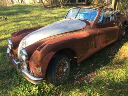 Now, the seller includes this picture as a reference to what the Jaguar once looked like. That’s an incredible amount of deterioration, from the paint completely fading away to the wire wheels losing their finish. While it’s likely that the car was in less-than-stellar condition to begin with – perhaps even with a very low quality paint job – it’s still a bit jarring to see how much worse it looks simply by virtue of sitting outside exposed to weather. While there may have once been a decent starting point to work with, this XK140 is likely a permanent victim of being put out to pasture.