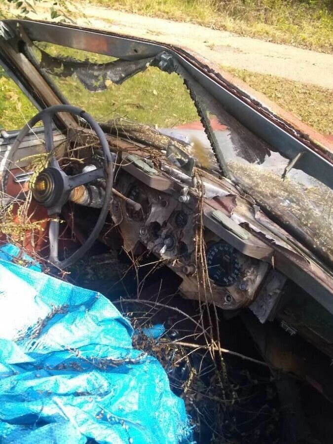 What sort of barbarian restores a car like this to near running condition and then leave it to rot without so much as a tarp on it to keep the worst of the weather out of it. I want his/her head on a plate.