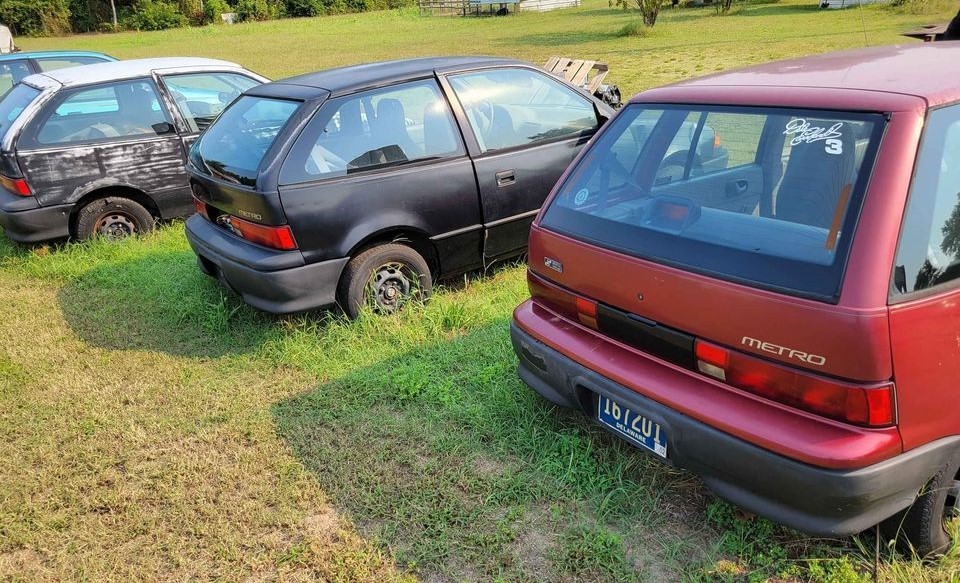 When you think of collector cars, all sorts of iconic names come to mind. Like the 1965-66 Ford Mustang. Or the 1955-57 Chevy Nomad. And this list goes on and on. But the one brand that doesn’t make anyone’s list is the Geo Metro. Yes, the Metro, those super simple econoboxes of the 1990s that got crazy good gas mileage before the advent of the hybrid. The seller has somehow ended up with four copies of the little car, including an XFi which was the stingiest of the bunch on petrol consumption. Located in Pittsville, Maryland, they’re offered as a package deal here on Facebook Marketplace for $2,500. But you can have your choice at $750 each. Thanks for the tip, Dawson Hittle, and for going down the path less traveled!
