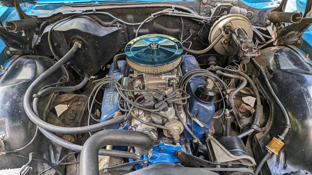This LTD is not laden with accessories, but enough to make it a nice car to drive. Power steering, power brakes, and an automatic transmission are there, but no air conditioning or power windows. Ford’s smallest V8 is under the hood, a 302 cubic inch unit, where a 4-barrel carburetor has been added to perhaps goose things up a bit. Nothing is amiss with the car’s electronics and the hidden headlights operate as they’re supposed to.