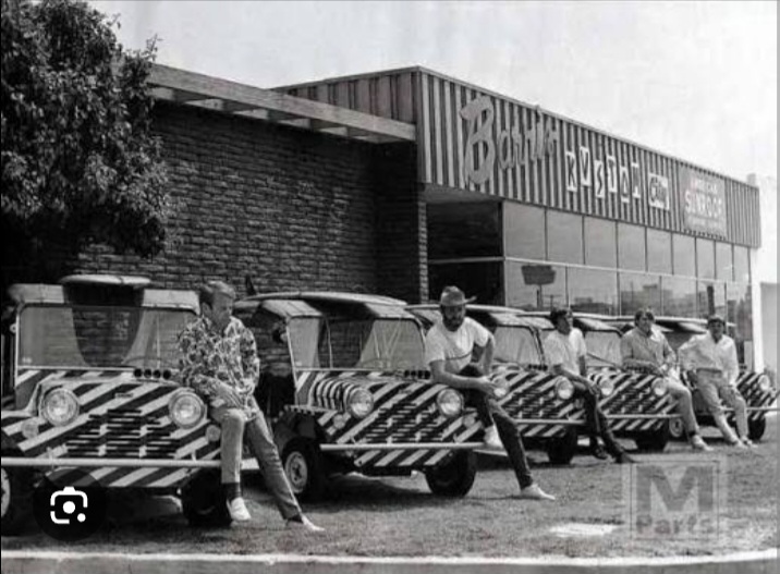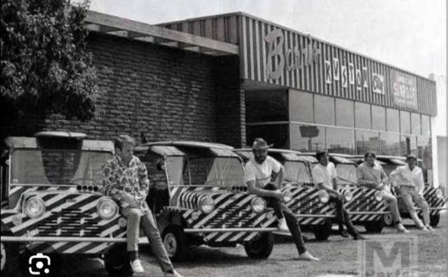 Let’s go surfin’ now, everybody learning how, come on a safari with me,,,,not sure if other countries shared our pop culture, but the late, unbelievably great George Barris, “created”, some say 5, one for each member of The Beach Boys,, to possibly as many as 25 “mini-surfers” they were called. Painted candy cane stripes, not sure how they differed from “regular” Mokes. They were featured in several TV shows and movies, and surely relegated to S.Cal. I believe only one is left today. I read, the “Californian” was an attempt at a street legal car for the US, and almost half of Mokes were sold in Australia, oddly, only about 1500 in the UK, even less in America. The latest? Yep, E-Mokes,,,and are gaining steam.