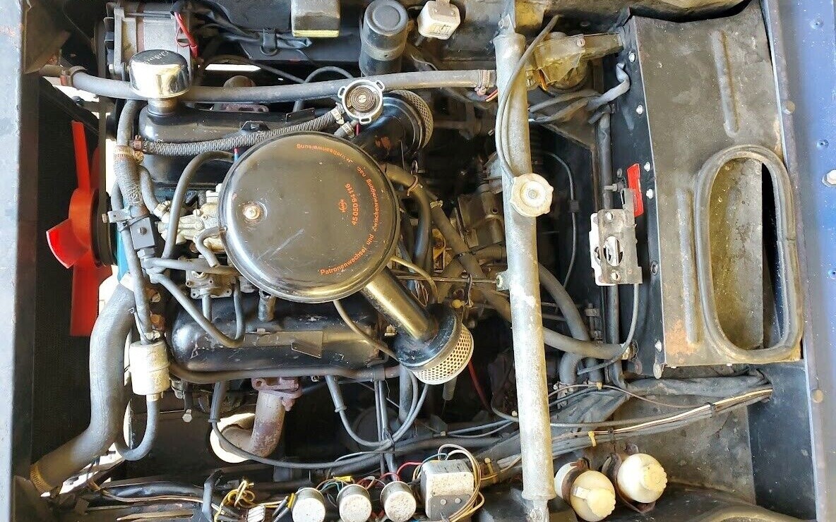 The German-made Ford 4-cylinder is a V-type engine, which by this time had grown to 1.7 liters and was making somewhere in the neighborhood of 75 horsepower, but in a two-seater weighing less than a ton and with a 4-speed manual it seems like a sportster that would be fun to get behind the wheel of. That’s what the seller says, as he drives the car every few days so no problems here with long periods of inactivity.