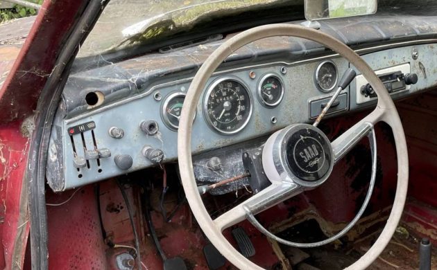 The seller originally intended to restore this car, swapping in earlier-style interior parts and possibly even converting it to electric power, but a new electric boat motor business took precedence. Instead, the Saab is being sold as a complete package, including a period Chilton’s repair and tune-up book with a section on competition tuning.