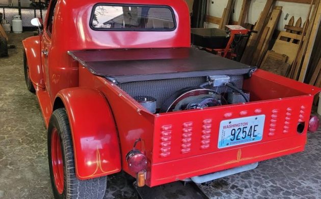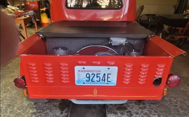 I know we can’t get too much information from the pictures on this ad, but from what we can see, this is a really neat car. Obviously, we can’t measure the paint thickness or see fine details, but if you are looking for a tidy, unique, one-off car/truck/Bug vehicle, this is a great little rig, and is sure to spark many conversations, long stares, and thumbs-up as you drive around town. The builder really melded the Ford and Bug components together well, and the stance is just right, too. The louvers on the rear are a nice touch, and the dual carbs on the VW engine should help this scoot around nicely.