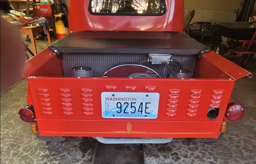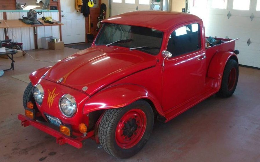 I know we can’t get too much information from the pictures on this ad, but from what we can see, this is a really neat car. Obviously, we can’t measure the paint thickness or see fine details, but if you are looking for a tidy, unique, one-off car/truck/Bug vehicle, this is a great little rig, and is sure to spark many conversations, long stares, and thumbs-up as you drive around town. The builder really melded the Ford and Bug components together well, and the stance is just right, too. The louvers on the rear are a nice touch, and the dual carbs on the VW engine should help this scoot around nicely.