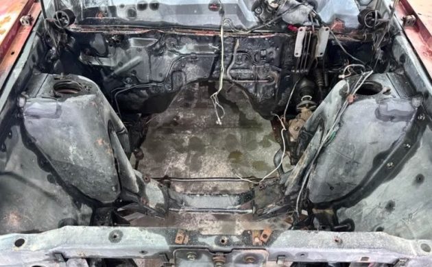 The seller mentions that his car came from Arizona, and says that not a lot of rust is present. However, some can be found in the quarters, with the driver’s side panel appearing like an attempted repair has already begun in this area. The body also shows a considerable amount of patina, but if one tries to imagine what the exterior looks like underneath this rough finish, I’m guessing most of the sheet metal will probably be salvageable. A complete grille will also be included in the sale, so that’s one less item you’ll have to be on the hunt for.