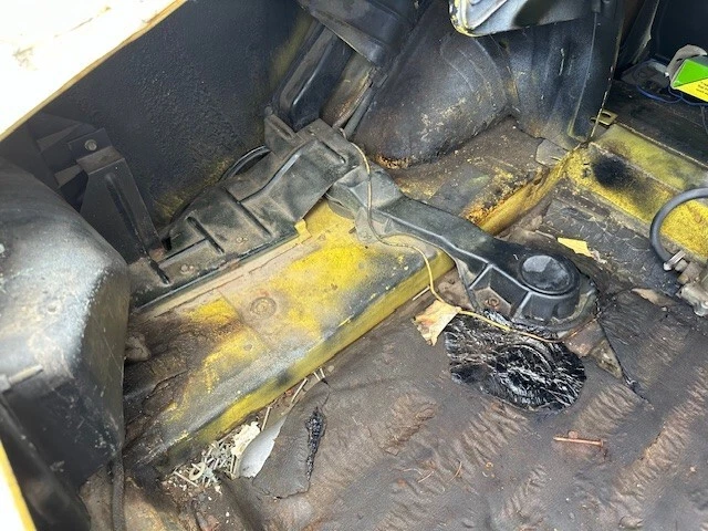 The report also verifies that the Mach 1 was originally painted yellow, with some remnants visible in a few spots, such as here inside the trunk. There’s no mention of when the color was changed, but the owner does say this one is a rust-free California example, and although I’m spotting a few minor body blunders, things appear to check out OK in the no-corrosion department.