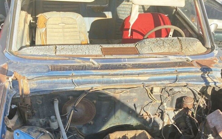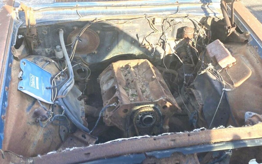 The bucket seat interior looks intact but fully roasted. This is the best shot of the inside other than pictures of the mostly solid-looking floorboards. It looks like the center console still resides between the buckets, though only an edge of it is shown. Rust sullies every picture, but we’ve seen worse, and it’s not every day you’ll find an R-code Galaxie under $15,000. The 3.50 rear axle gears suggest the original buyer had more than drag racing in mind, and this would have been one hot car on the streets in its day. How would you restore this rare dual-quad 427 Galaxie?