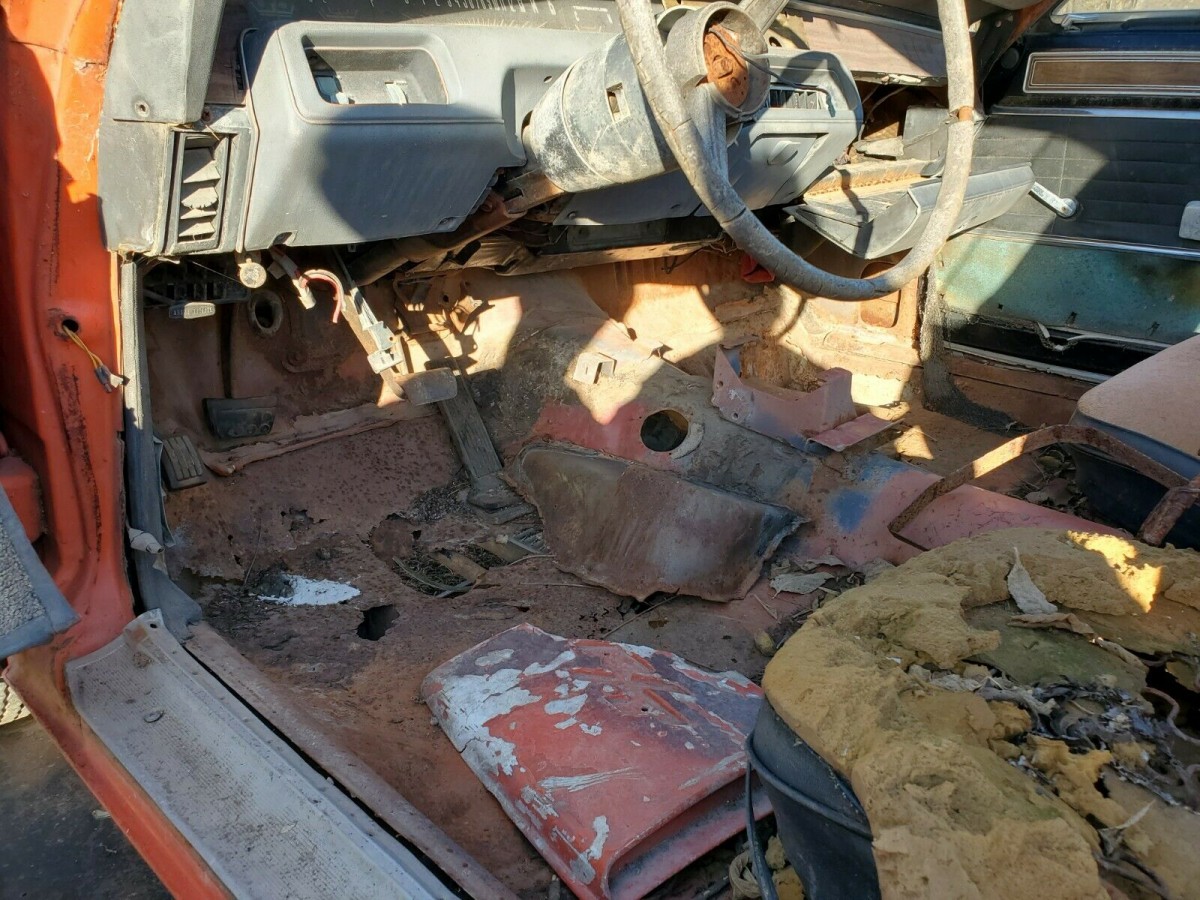 We surmise from the limited description the seller provides that there is no engine under the hood. The VIN tells us it left the factory with a 440 cubic inch V8 with a 4-barrel carburetor. The transmission, which is also MIA, was once a 4-speed manual later changed to a TorqueFlite, given the additional cut-out in the floorboards. Besides bringing the body and interior back to life, the buyer will have to source a new drivetrain. There are pockets of rust in several places and the right rear quarter panel seems to have the bulk of it.