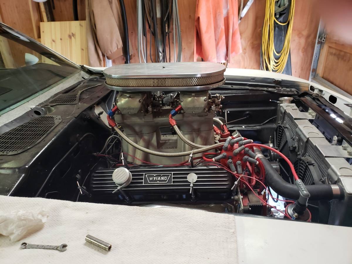 We don’t know if the car has been raced and if it was, how well it did. The indicated mileage is just 10, but that could be since the transformation. But we’re told the odometer is broken, so it likely doesn’t matter. The 440 is paired with an automatic transmission and we see racing seats (2!) and apparatus where a back seat used to be. For a dragster, you’d think a hardtop would be a better choice because the roof acts as something of a rollbar. We can’t tell if one was added to this convertible or not.