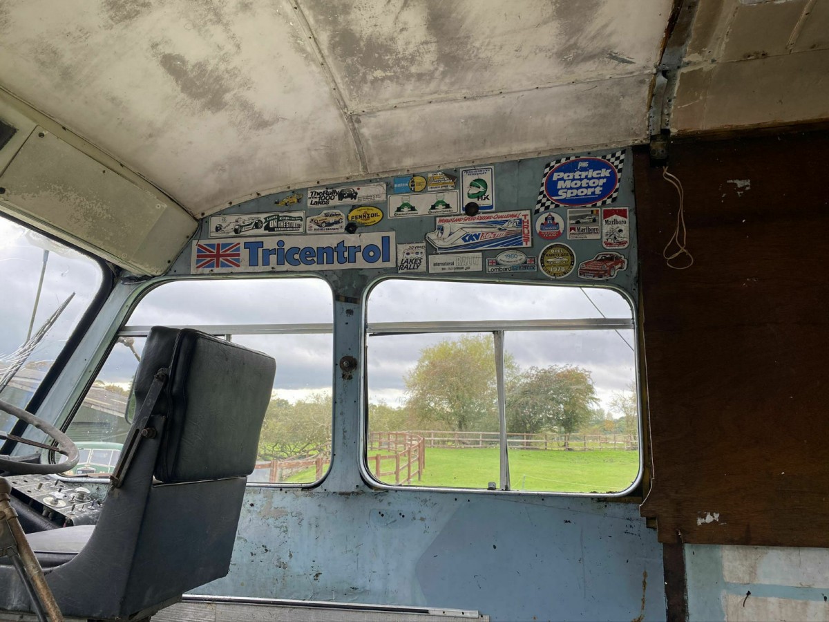 Here’s a pretty solid clue that this was one of the race team vehicles: those old-school and oh-so-cool stickers from other in-period providers of race-related equipment or services, the kind of emblems that could only come from one period and are near impossible to re-create with the patina seen here – that only comes from being adhered to the space above the driver’s head sometime in the ’70s and remaining there ever since. Given the location of these stickers, it’s a good thing these Austin transporters aren’t prone to leaking – which is likely more than you can say for the 5.7L vertical diesel that powers this wicked hauler. How would you use it if you decided to drag it home as a winter project? Thanks to Barn Finds reader Kyle K. for the find.