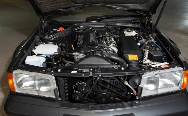 Most people would take one look at a 2.5-liter four-cylinder engine and immediately dismiss it as nothing special. However, Mercedes-Benz collaborated with Cosworth to produce a genuine giant-killer. Based on its M102 engine block, Cosworth developed a highly-efficient DOHC cylinder head with sixteen of the largest valves it could physically fit. The results justified the effort, with the Evolution II placing 232hp and 181 ft/lbs of torque at the driver’s disposal. The rest of the mechanical components received plenty of attention, from its dog-leg five-speed manual transmission to its homologated 3.27 rear end, adjustable suspension, and the enormous Brembo four-piston disc brakes. Mercedes quoted a top speed of 155mph for the Evolution II, although it is widely acknowledged that with the engine’s rev limiter removed, it would have been considerably faster. This Evo is mechanically original, but the seller replaced the radiators and injectors and overhauled the rear end and engine oil cooler during the cosmetic refresh. It has been driven sparingly since work ended, but potential buyers can consider it a turnkey proposition.