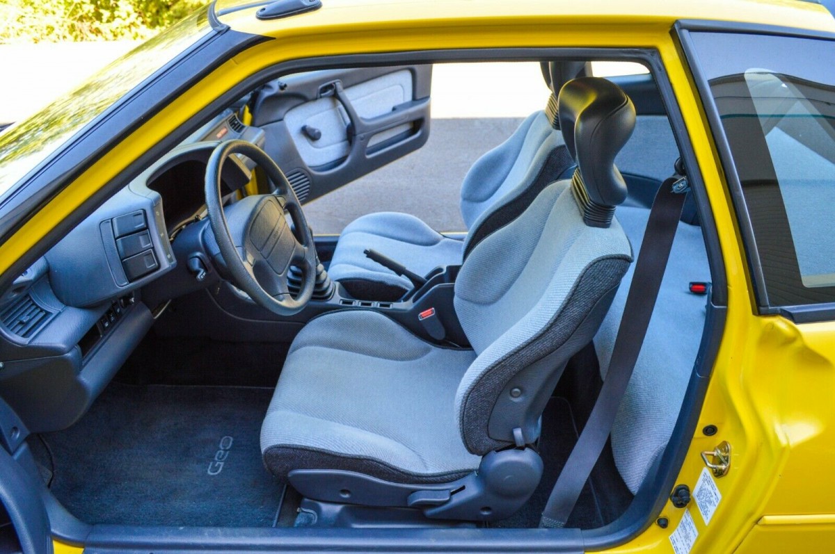 The interior was peak ’90s, with the two-tone upholstery and wrap-around instrument binnacle. The sport seats were extremely well-contoured, and you have to love the ribbed gear shift boot. This Storm is in incredible condition inside and out, clearly having never ended up in the hands of a teenage driver like so many of them did. The GSi models also came with some unique aero enhancements, like front and rear spoilers with integrated driving lamps. The seller notes this Storm remains completely stock inside and out, down to the factory cassette deck. There’s also the clean Carfax, with no evidence of prior accident damage – and it certainly looks that clean.