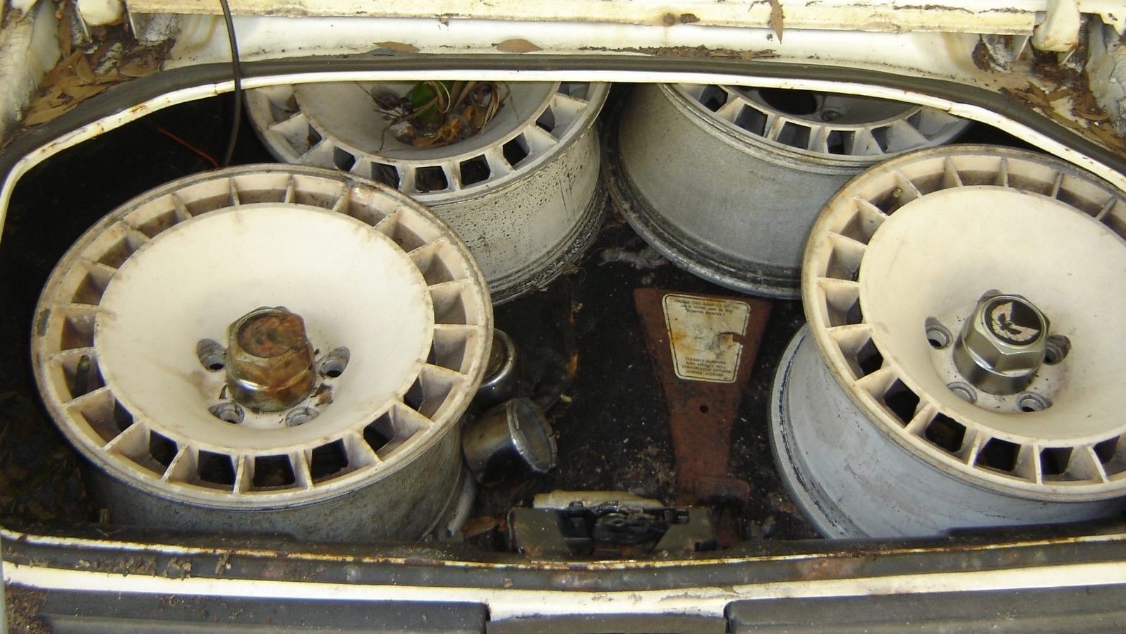 Gotta say I was thrilled when I saw the turbine wheels in the trunk. I love these cars, even in this deplorable condition. I’d pony up the five grand in a heartbeat except I’d have to pony up a whole lot more in the ensuing divorce.