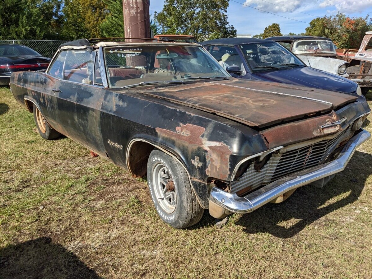 While Ford was making lots of sales noise in 1965 with its new Mustang pony car, Chevrolet was having a banner year, too. For the first time, they produced more than one million full-size automobiles with the Impala representing 80% of that record. The Impala Super Sport was in its second year as a series of its own, which included this well-worn and thoroughly rough project convertible. Offered by a dealer in Gray Court, South Carolina, this Chevy looks like it was forgotten about long ago. Yet it’s available now and here on eBay for $6,500 (or you can make an offer). Another tip from yesteryear brought to us by T.J.!