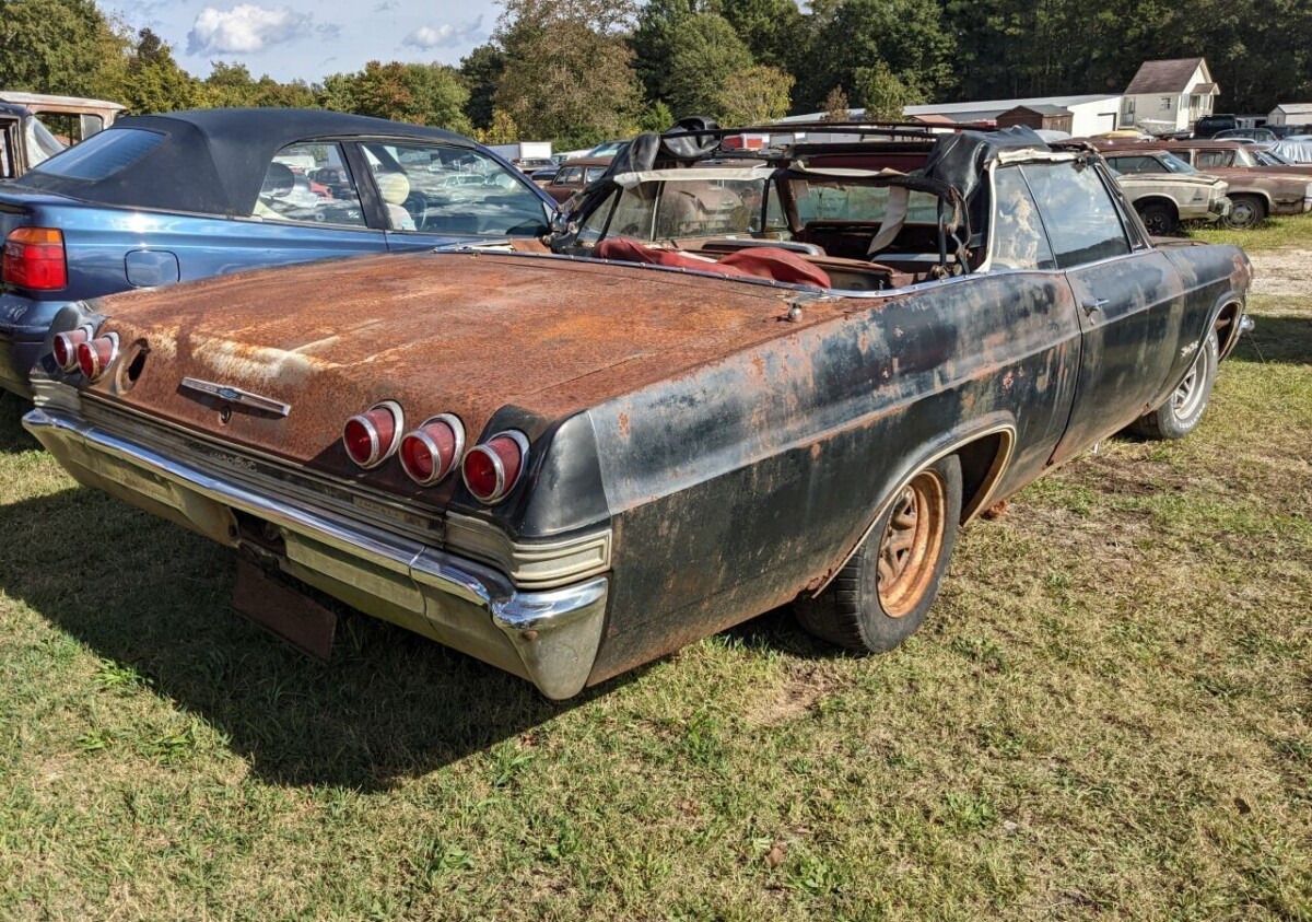 A 65 Impala convertible is one of my bucket list cars, & I don’t mind taking on a project, but I’m not even sure this one qualifies as a parts car. About the only piece of metal is see that doesn’t need replacing is the dash, & I’m not 100% sure about that. Even if it is a SS, there are better starting points out there.