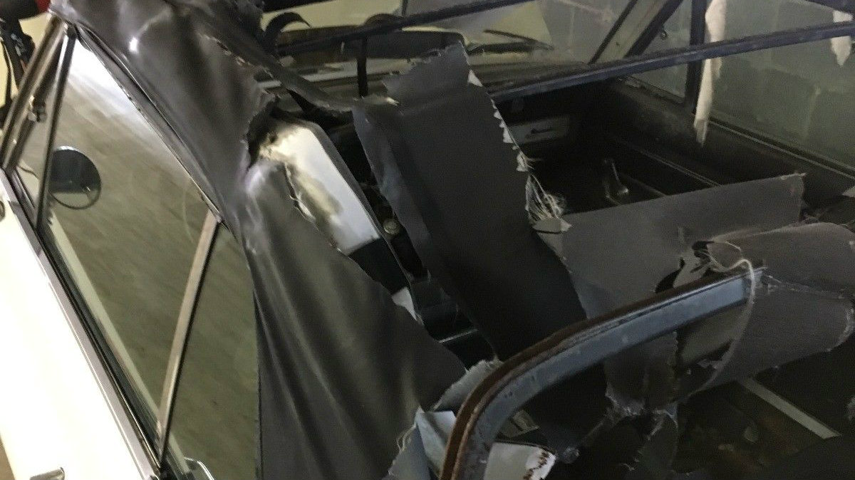 We don’t see much of the interior in any of the pictures, but considering the state of the convertible top and the amount of moisture the car has seen, it can’t be very pretty. Oh, by the way, it doesn’t have a title either, but the seller tells us a Vermont title is easy to get. Actually, our readers have made that comment in the past, and one was kind enough to explain the procedure in the comments on this past post.