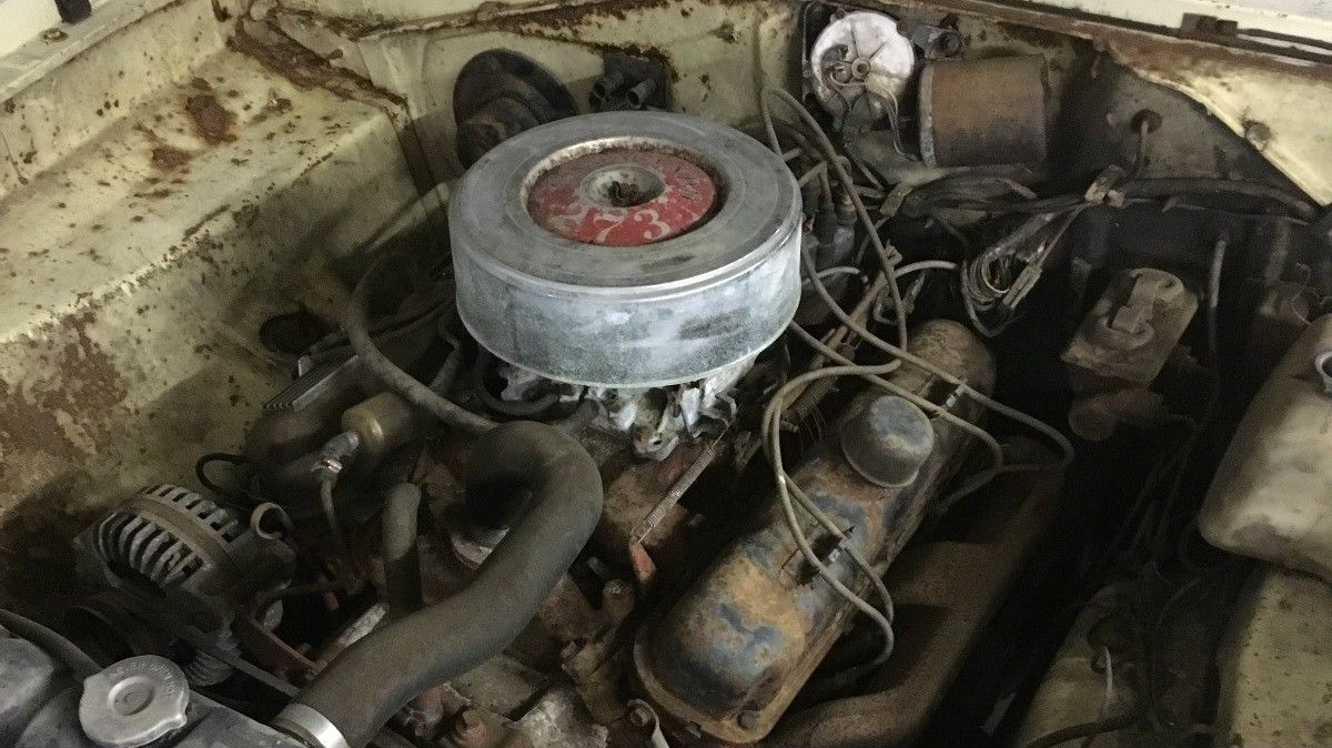 It certainly looks like the original 273 “Commando” engine is still in place, and that probably means the original Torque-Flite automatic is still there too. And with an estimated 116,725 miles it might still have some life left, if you can free it up. Yes, it’s locked up at the moment. Would you start whatever your favorite magic procedure for freeing up a stuck engine is, or would you call the scrap man? Let us know in the comments!