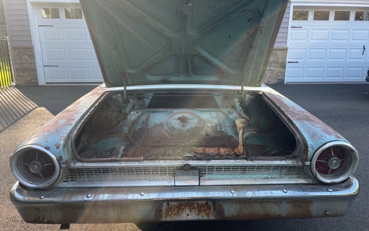 Popular in ’63, Ford sold about 36K Galaxie 500 convertibles and the wind in your hair experience only cost about $250 more than the two-door hardtop version – those were the days! The seller states that this Galaxie has been off the road since the ’90s and there is “no visible rot in hood, fenders, and doors“. But that doesn’t seem to be true if you examine the passenger side fender and door. And that’s definitely not the case with the quarters and trunk floor. The seller advises that it needs a top and a windshield too. Considering the condition of the quarter panels, I’d be concerned about the condition of the underside – “rusty” describes its current state, says the listing, but I would be concerned about more than just that.