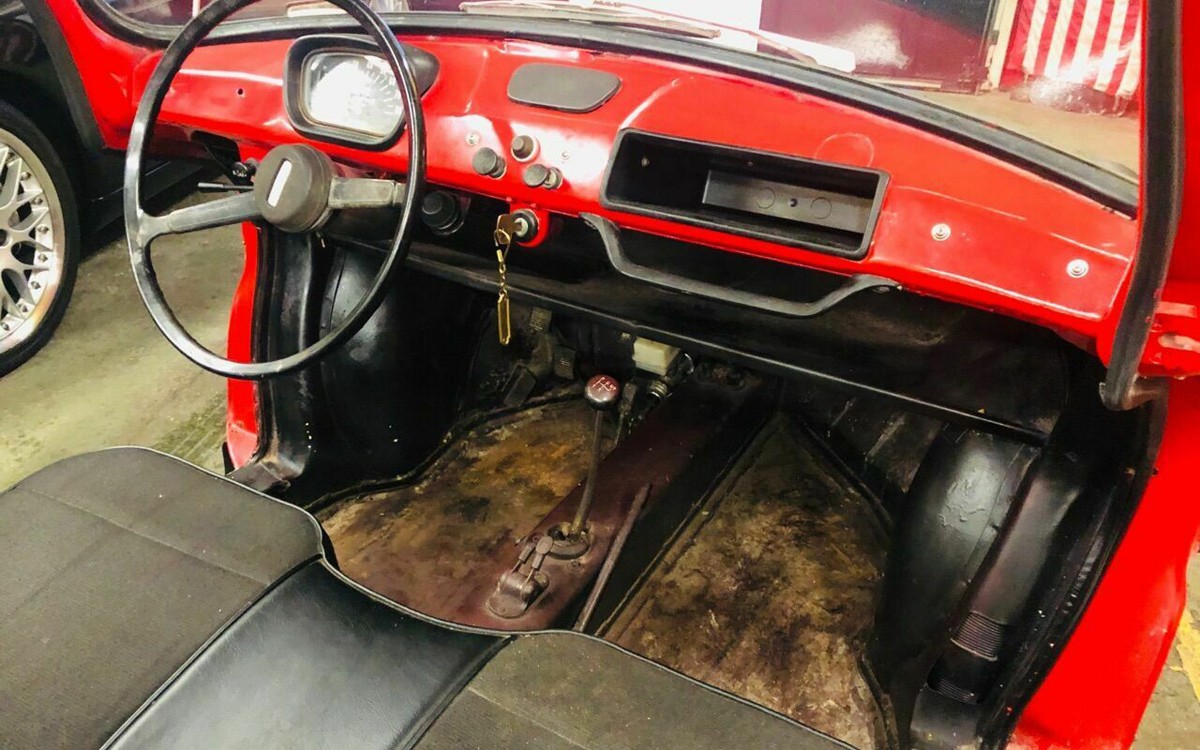 Another tipoff that this may not be a “serious” rally car is that there is no tach. The Deluxe didn’t come with a tach, only the Young S and Young SS – the Young SS was never imported to the US and are all right-hand-drive – had tachs, and also bucket seats. So, if you come across one of those, you’re legally bound by Barn Finds rules to let me know… (kidding) (not really) I would never have anyone riding in the back seat so maybe I could just take the whole back seat out and move the front seat as far back as it will go, hmm…