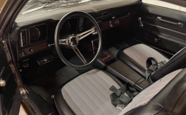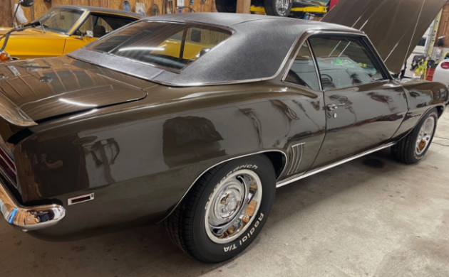 Out of 243,000 Camaros built in 1969, more than 37,700 came with the Rally Sport option, which brought hideaway headlights to the mix for a mere $131 extra. To get the RS package, you checked the Z22 option on the order form. The seller’s beauty has a 350 cubic inch V8 (2-barrel) and a TH-350 automatic transmission, along with goodies like factory air conditioning, which blows cold. The car wears Burnished Brown paint, which almost looks black (it’s been redone).