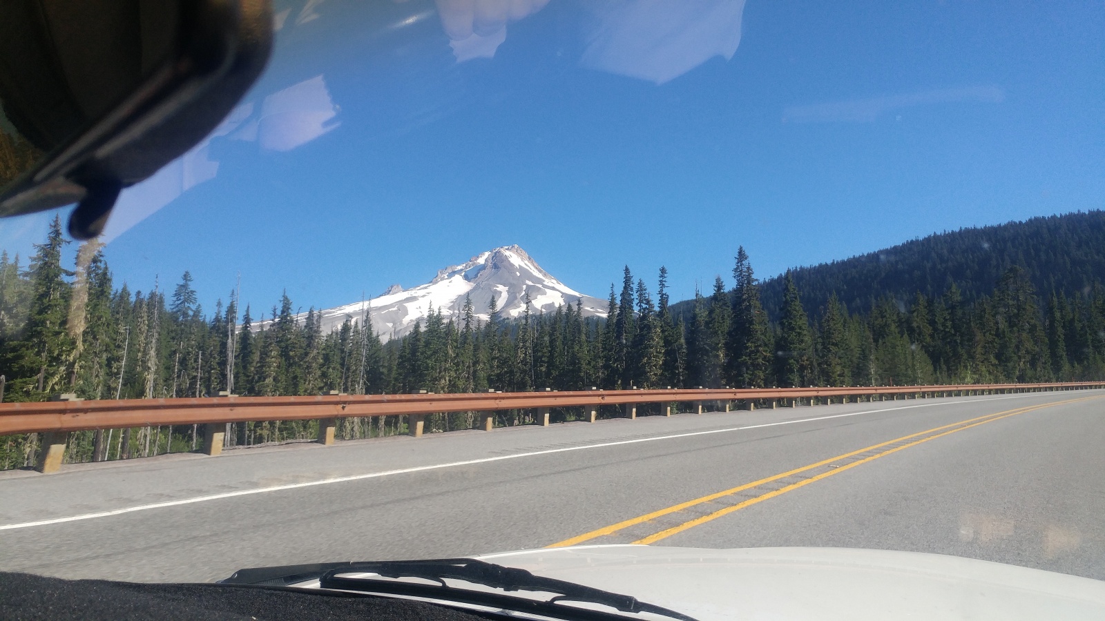 We basically drove around Mount Hood today. Some of the roads were tree lined with beautiful views of the mountain peak peeking out on occasion. Other times we were in rolling hills that were lined with vineyards and farms. We even saw some desert with sage brush on one side and a river filled with rafters on the other. The scenery and the roads were great, but there were a few highlights.