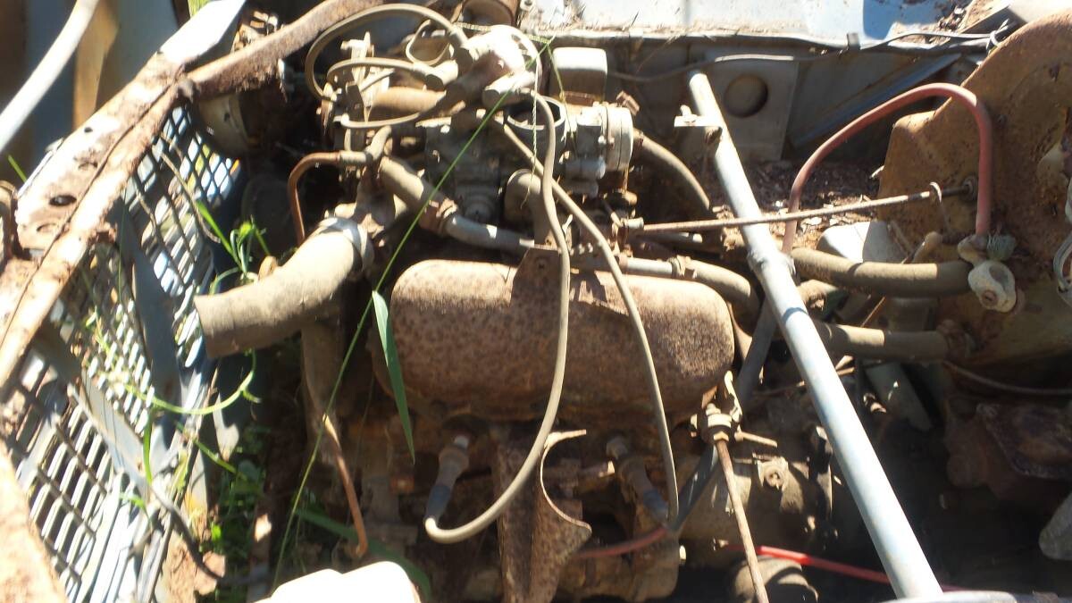 As is the case for most photographs on craigslist, this one comes across as a bit fuzzy and overexposed. It is hard to see just what engine is present here. Saab was transitioning over to a V-4 engine that was a conventional 4-cycle mill that originated in a Ford Taunus. I can see two spark plugs on this side, so my guess is that this car came equipped with a V-4. There just doesn’t seem to be space for the other half of the V. I am assuming that the latticework to the left is the grill, so is the metal in the upper half the right front fender? What is going on here?