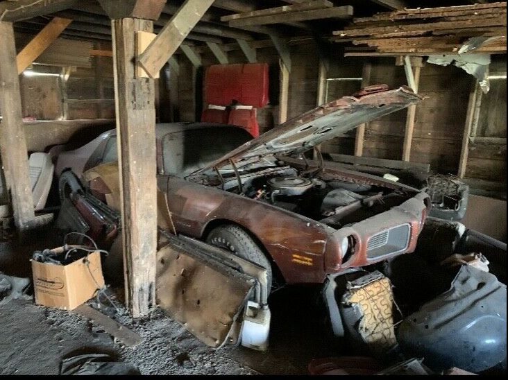 First picture clearly shows car complete with motor intact inside that barn. The sale site pictures then show the car minus the motor with an early 70’s late 60’s Grand Prix sitting next to it after it has been removed from that barn. My bet is this guy bought it for the motor and trans for the Grand Prix and is now selling the leftover rusty skeleton.