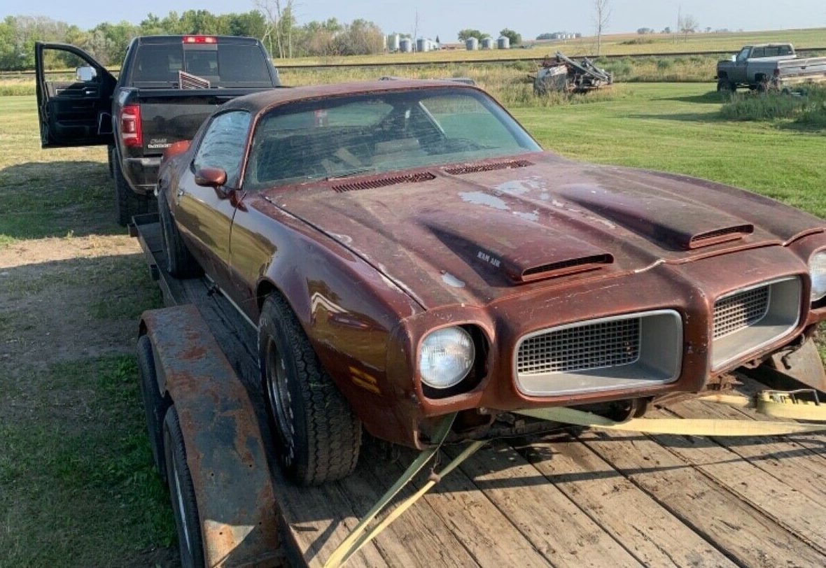 While bidding ends in just a few hours for this awesome (and rusty) 1970 Pontiac Firebird Formula, it’s too good not to share. These discoveries, no matter how deflating they may be once you drag it out of the barn, are wonderful moments as a car enthusiast. Just seeing a vehicle no one has laid eyes on in decades for the first time is a pretty great feeling, even if five minutes later you realize there’s no way in heck you’re taking it on. This Firebird Formula is a factory Ram Air car that originally came with a 400 V8 and automatic transmission. The engine and transmission are gone but the factory air cleaner and Ram Air hood are accounted for. Find it here on eBay where there’s one bid to $2,500 and no reserve.