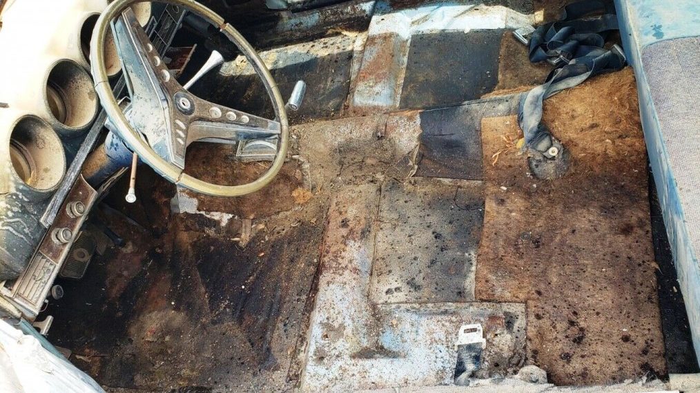 Looks like carpet padding is still on floor , bottom view looks in great shape , looks like California car judging by plate on rear bumper