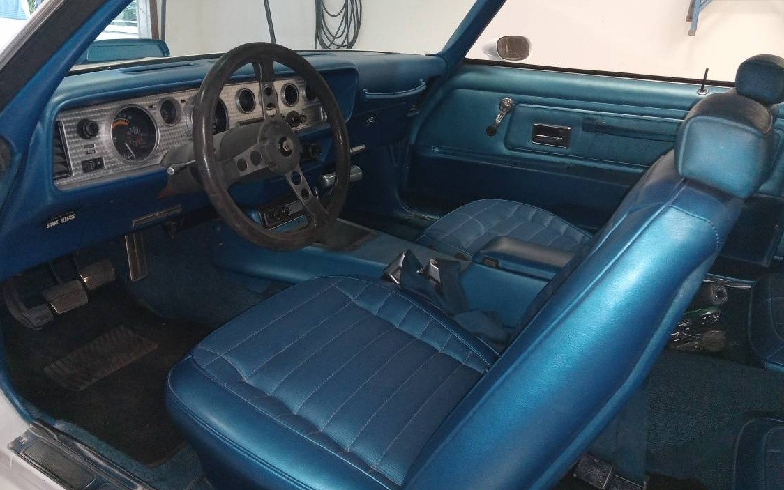 While other Firebirds were available in a variety of colors, Pontiac made the choice easy for Trans Am buyers in 1970, offering either a Lucerne Blue body with white stripes or vice-versa.  This one came from the factory as the latter, and the seller says it’s since been repainted.  He also claims the body is free from rust, although it’s not mentioned if any bodywork or repairs were made before the new paint was applied.  The exterior presents beautifully here, and it appears the proper prep work was done to the panels to ensure a high-quality result for the fresh finish.