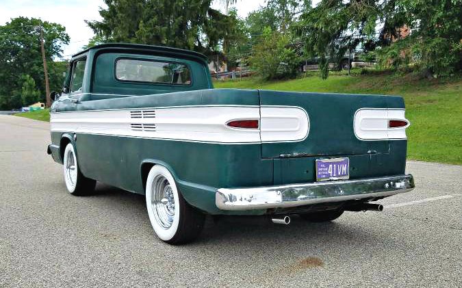 Vince Habel is correct it is a car engine,a very common thing in Corvair trucks as they were usually used hard. Also you never put a fuel filter in the engine compartment–fire risk. Car mirror on passenger door and from its angle useless, and non stock inside arm rests. Sorry but if I’m going to pay this much for a vehicle it’s going to be correct. Lord only knows what is hidden.