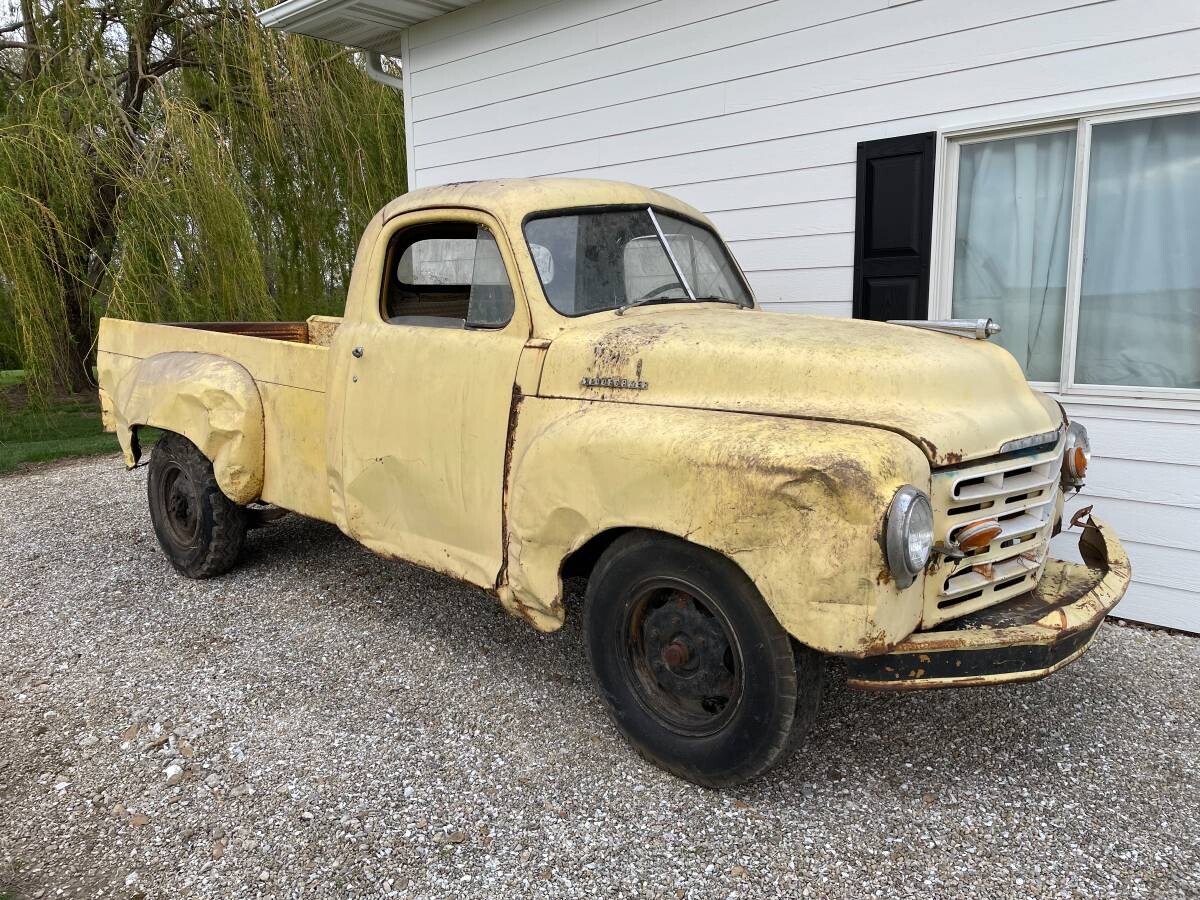 I was so excited to find this 1951 Studebaker 2R10 barn find here on craigslist – not only because I love Studebaker trucks, but because the seller actually pulled the truck out of the barn for its photo session – kudos! This handsome project truck is located in Avon, Illinois and the seller is asking $2500 to give her over to a new owner. Robert Bourke – hired by Virgil Exner in 1940 to work for Studebaker’s design department alongside Raymond Loewy – penned the lines of the 2R truck series. The modeling was finished in 1945, but Studebaker was focused on producing passenger cars to meet post-war demand. The new truck was finally launched for model year 1949 and it represented a major departure from the bulbous fenders and running boards of the M-series. The bed incorporated double-wall construction so that if a load shifted, it would not damage the exterior sheet metal. A generous greenhouse helped distinguish the cab. While the M-series utilized several passenger car elements, the 2R shared very little with Studebaker’s cars. Gunter Kramer pitched us this excellent tip – thanks!