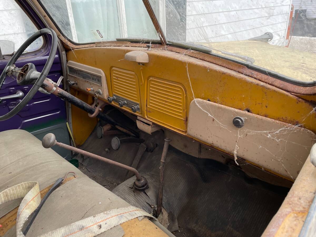 The 2R series ran from half-ton (2R5) through two-ton (2R17). This rig is a three-quarter ton, with a beefier frame and suspension versus its lighter sibling. Don’t expect a modern ride, though – these old trucks drive like buckboards. Buyers in 1951 settled for a 170 CID Econ-O-Miser flathead inline six-cylinder, with an output of about 85 hp – up 5 hp from the first ‘Misers thanks to an improved compression ratio. Yes, there’s enough torque to pull a stump. The standard gearbox was a three-speed column-shift manual but a four-speed floor-shift was available as an option or standard on the larger trucks. The seller notes that he hasn’t tried to start this motor yet.