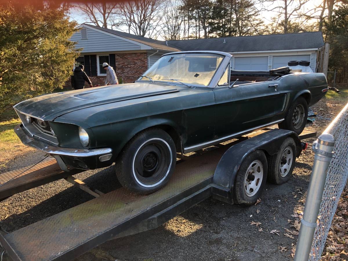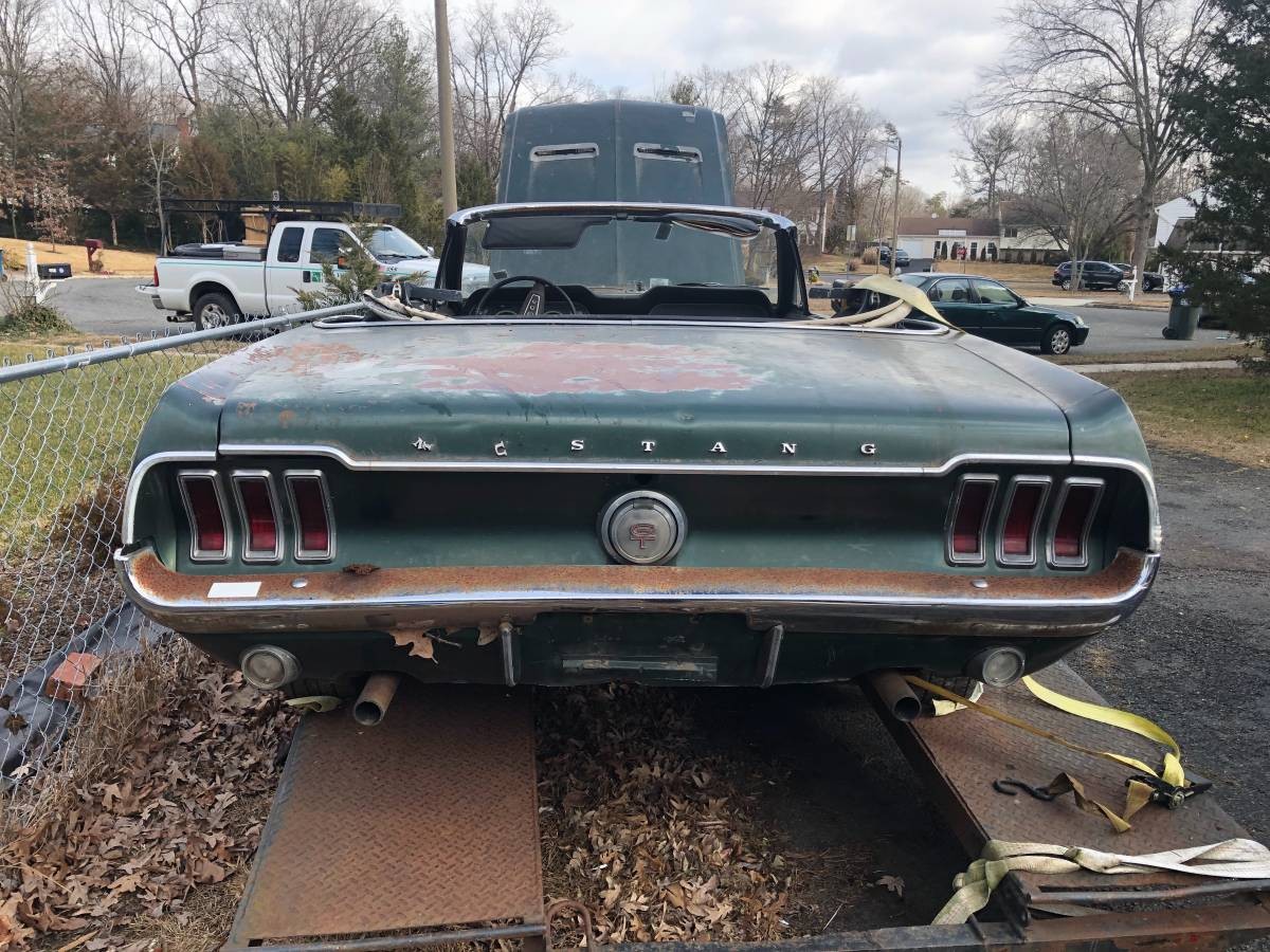 My best friend in high school bought a 68 Mustang GT convert his senior year, 1970. It was also green, but with a 390/4 speed, 9″, front discs, console, AM/FM stereo, tinted glass, factory gauges, console, etc. I had a black interior, with a white top with the “folding” glass rear window, tinted glass and a reflective gold “C” stripe. Previous owner striped the hood in gold, from the turn signal/vents back. It was a really nice looking Mustang, even the Chevy and Mopar guys liked it. Fast? Not really. The 390 just wasn’t in the same league as the competition. But yeah, it was a really nice looking Mustang! If I still lived in Northern Virginia I would definitely take a look at this one.