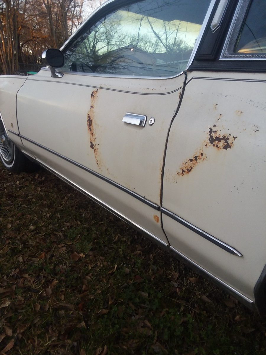 Unfortunately, the driver’s side does not look quite as clean, although the seller maintains it’s just surface rust (and to their credit, uses this picture as the lead for their FB ad). While this can’t just be polished out, I’ve been amazed at what a skilled body shop can do blending new paint with old, so it might not be time for a full repaint just yet.