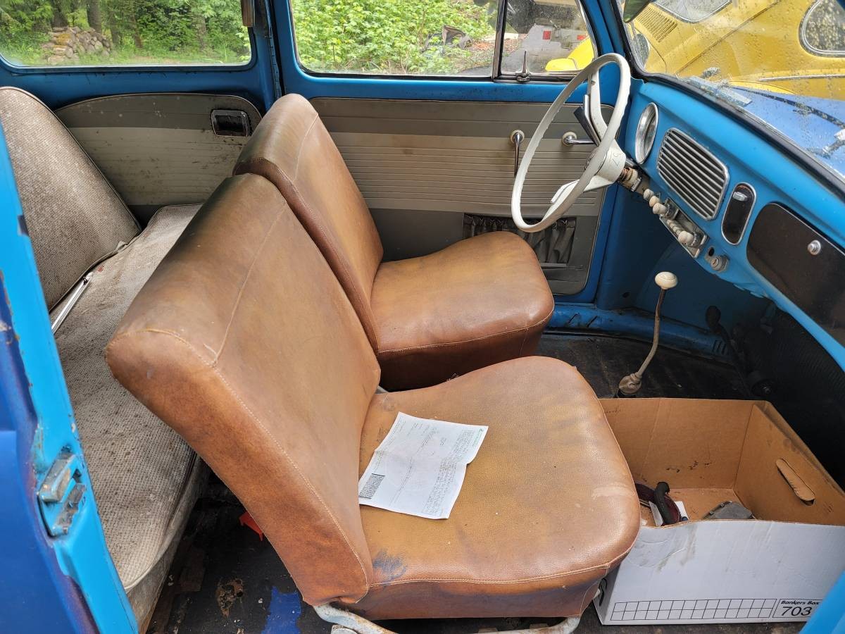 The Beetle’s outside paint job indicates that it’s always been blue, but that it left the factory wearing a lighter shade than it currently shows. The same goes for the upholstery, which is much closer to a shade of caramel upfront, and straight tan on the door cards and backseat. These are minor grievances, especially when you consider that a car this old that hasn’t been in a museum is susceptible to all manners of poor modifications and cheap fixes, as Beetles are notorious for being strung back together when one major component fails. The seller notes that this Beetle is correctly titled as a ’57 but that it rides on a 1960 pan.