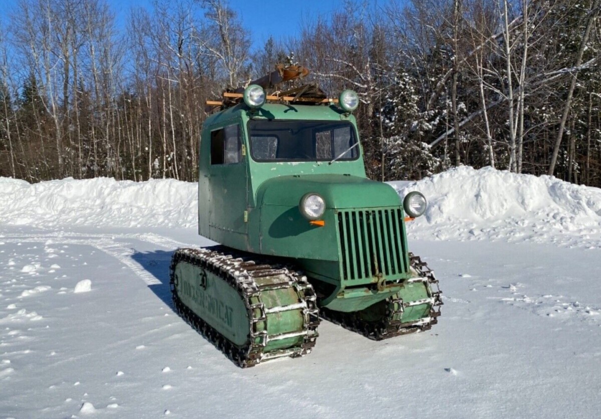 The Colo Game And Fish had one that my dad ( game warden )used one writer ( about 1958. ) to rebuild Vaughn lake spillway on top of Ripple Creek Pass. Narrow enough that the passenger ( high school me ) had to ride with one cheek in, one out over the moving track. It drug aspen trees well on the snow. It fit in his double horse trailer ( Croft ). Vapor lock every afternoon when the sun was out.